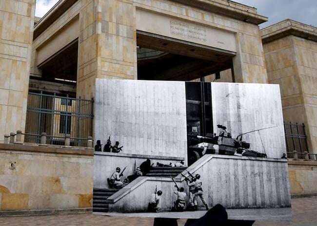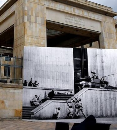 En la Plaza de Bolívar frente al Palacio de Justicia, se reunirán artistas, periodistas, sobrevivientes, organizaciones sociales y estudiantes se reunirán en un acto de memoria colectiva en el mismo lugar donde ocurrió la masacre, para resignificar el espacio y afirmar el derecho a la verdad.